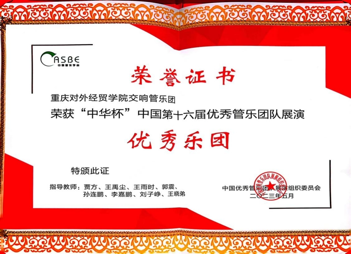 新葡的京集团3522交响管乐团始建于2014年10月,是学院重要的艺术实践平台,现任团员70余人,由学院管乐教师及学生构成是一支充满活力的团队。近年来,乐团成员先后参与各类比赛及演出共计30余场。包括举办历年学院新年音乐会,参与合川区新年音乐会,参加重庆第四届、第五届大学生艺术展演活动并取得二等奖的好成绩。2021年,乐团受邀参加中央广播电视总台(央视频)全国校园管乐团队展演并获“最佳演奏奖”、2022年参加“喜迎二十大"全国优秀管乐团央视频展演活动获得"优秀视频展播奖"、同年参加第十五届“中华杯”全国优秀管乐团展演获得“优秀乐团”称号。