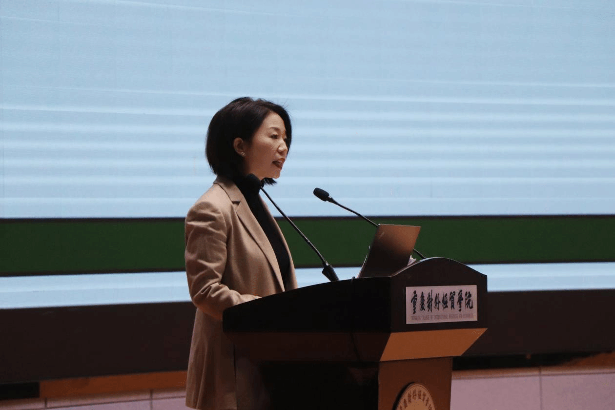 (图为外语外贸学院院长李霓副教授在会上作主旨发言)