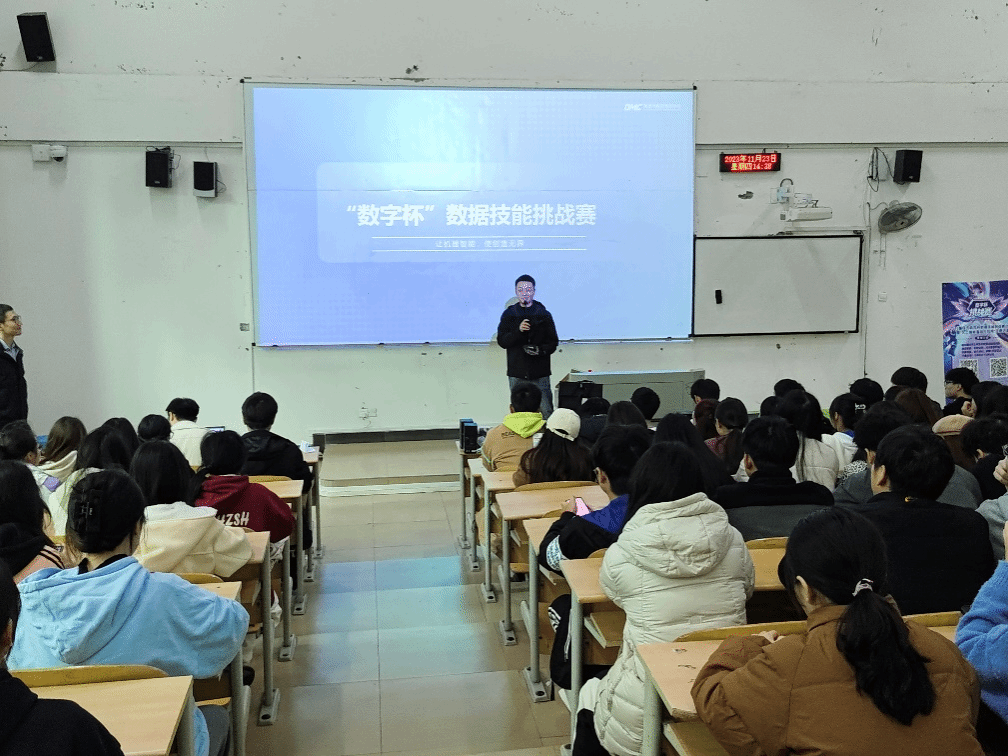最后,樊瑛工程师动员同学们参加由抖音集团主办的重庆市“数字杯”数据技能挑战赛,通过以赛促练、以赛促学的方式加深对人工智能基础与应用的了解。