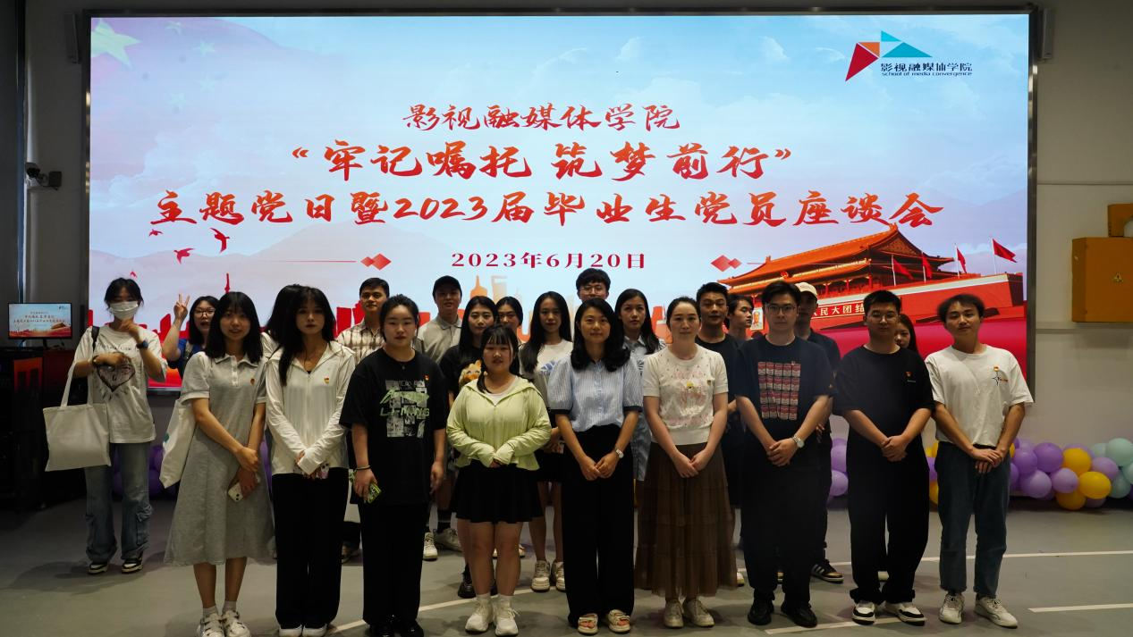 为深入推进学习贯彻习近平新时代中国特色社会主义思想主题教育走深走实,进一步加强对毕业生党员的教育引导,倾听毕业生党员的声音,2023年6月20日上午,影视融媒体学院学生党支部在9111会议室顺利开展“牢记嘱托·筑梦前行”主题党日暨2023届毕业生党员座谈会。会议由学院学生党支部书记廖俊杰主持,党总支书记周倩作为主讲人带领大家进行主题教育学习并作主旨发言,30名毕业生党员代表聆听了本次专题党课。