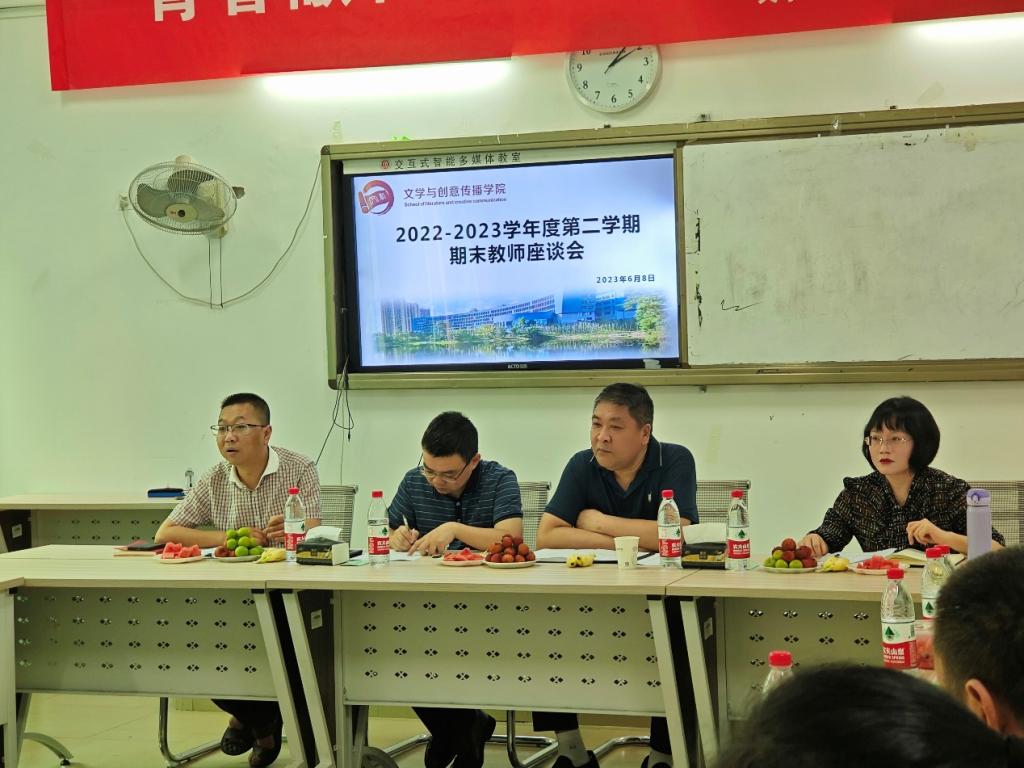 为落实立德树人的根本任务,以推动高质量发展为主题,2023年6月8日下午4:20,文学与创意传播学院于合川A校区6107会议室开展了2022-2023学年度第二学期期末教师座谈会。参与座谈会的有:新葡的京集团3522副校长杜斗恒,科研处彭成处长,学院党总支书记、代理院长何杨波书记,副院长陈寿琴副教授,学院系主任及副高以上教师。本次座谈会由何杨波书记主持。
