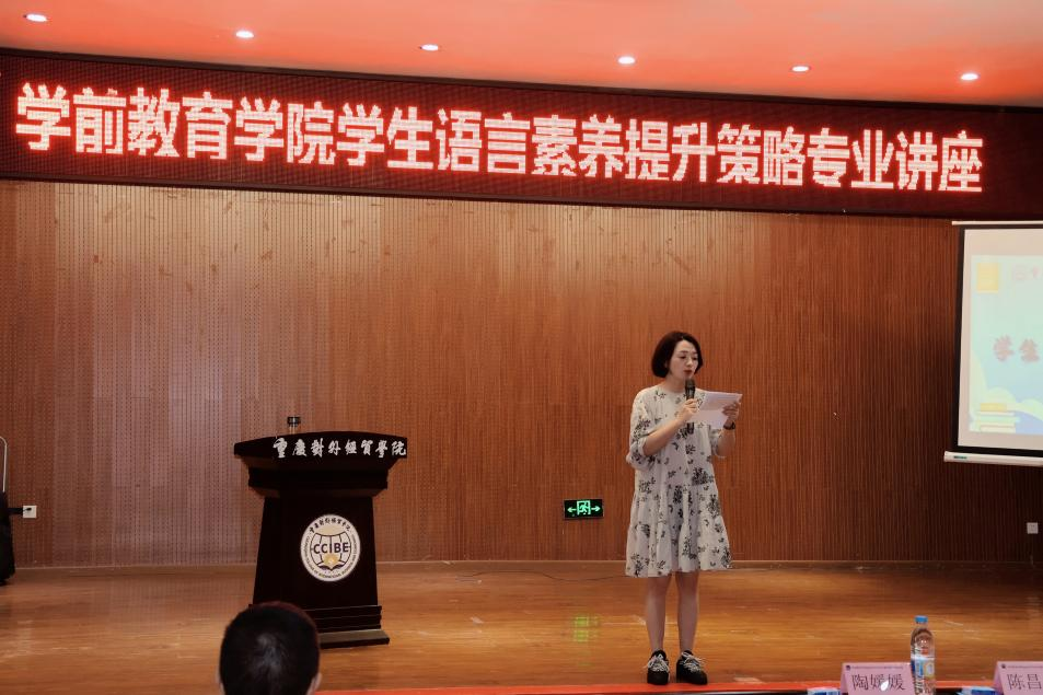 为提升学院全体学生的语言素养,加强学生对朗诵、演讲技能的掌握,用更专业的方法为同学们分享提升语言素养的经验,以全方面、多角度讲授专业知识,新葡的京集团3522学前教育学院于2023年6月1日15:00-16:00在铜梁校区学术报告厅开展学生语言素养提升策略专业讲座。本次讲座邀请到铜梁区朗诵艺术家学会会员、理事,重庆市音乐家协会会员,铜梁中学播音主持专业专职教师陈昌云主讲,学院党总支书记陶媛媛、团总支书记王小琴出席本次讲座,2022级全体学生参与本次讲座。