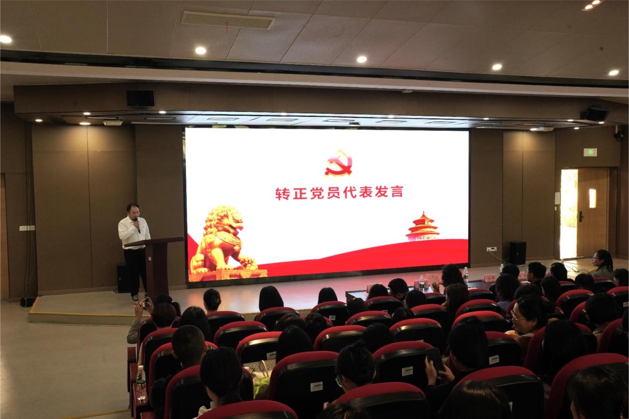 转正党员代表袁浩同志作发言,他表示党员同志要发挥先锋模范作用,敢于斗争,敢于冲锋,不畏艰险,砥砺前行。